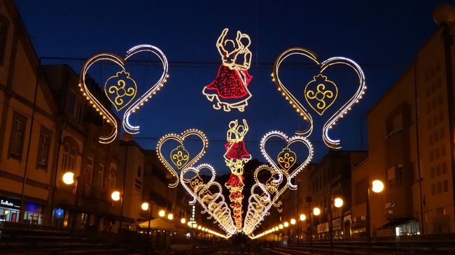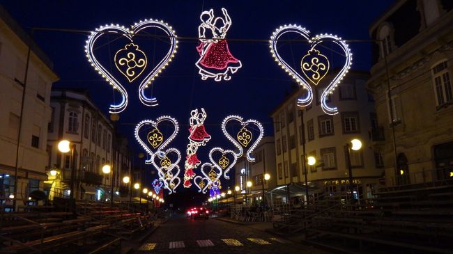 • ヴィアナの祭りは、巡礼祭Romariaで、アゴニア教会の聖母が主役のようです。<br />うっかり、その教会に行くのを忘れていて、この日に出かけてみたら、少し離れたアゴニア教会までの道にも、イルミネーションの飾り付けがありました。