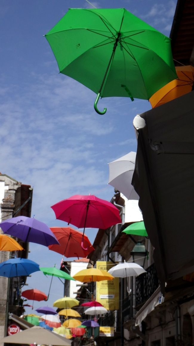 • アゲダという小さな町が、この傘の飾り付けで、一躍人気になったそうです。<br />出会った日本人が、アゲダまで見に行かれたそうですが、範囲は小さくて、たいしたことなかったと。<br />ここで、モノマネの傘の飾り付けを見れたのは、ラッキーでした。けっこう綺麗ですよね。