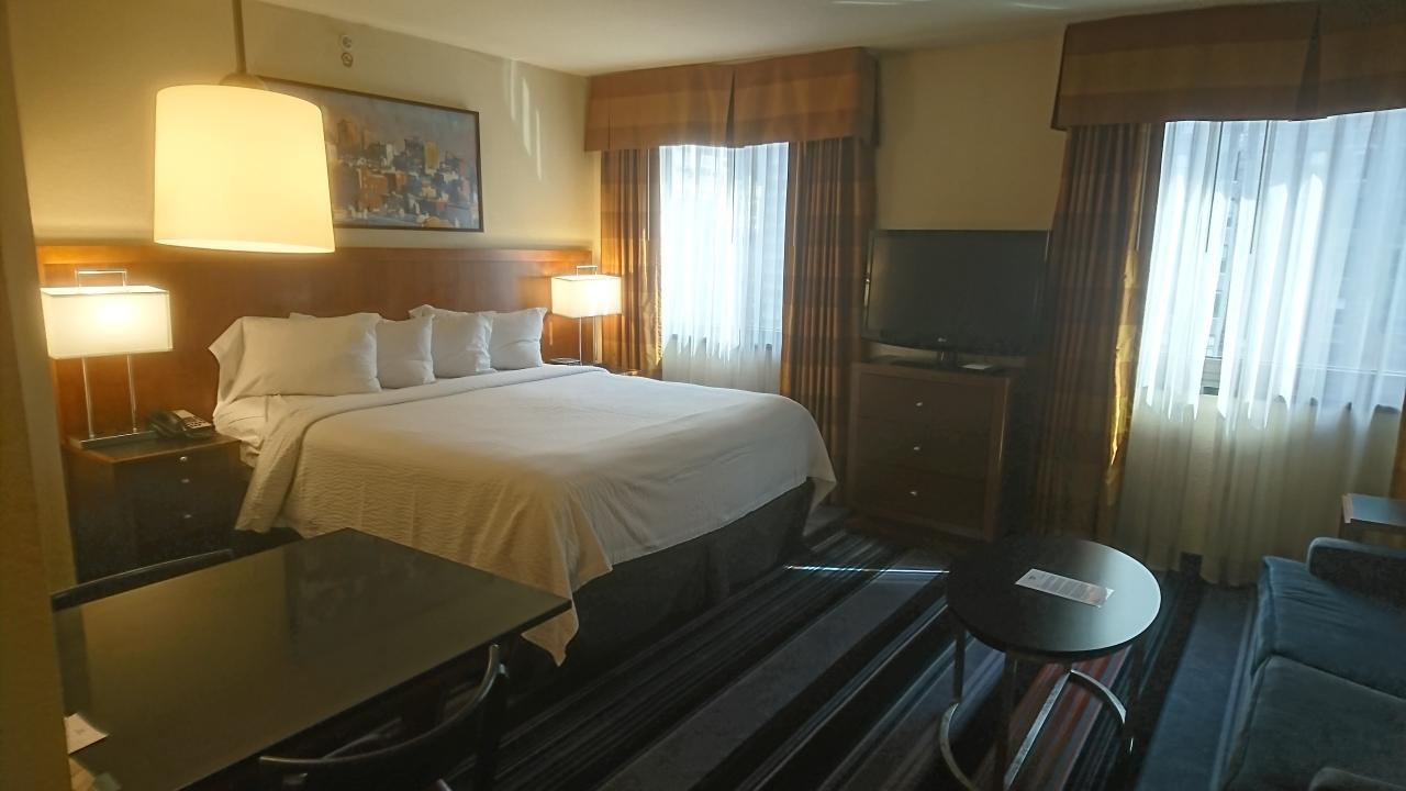 二つ目の停留所「ブライアントパーク」で降り、そこから歩いて5分程でホテルに到着しました。古い建物を改装したお洒落なホテルで、スタッフもお洒落な感じの人が多かったです。早めの到着でしたがすぐにチェックインしてもらえました。