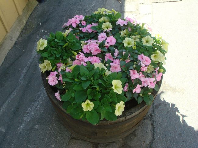 その前は、花いっぱい咲いた大きな樽。