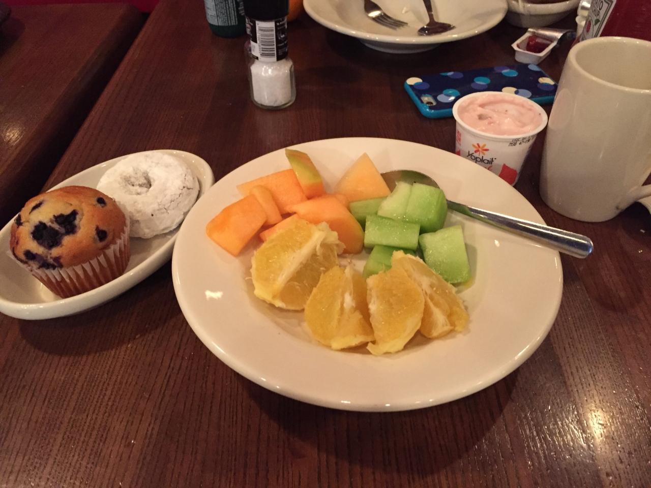 エンバシースイーツは朝食込みなので良く利用します。フィラデルフィアでは併設されているTGIFでの食事です。 -