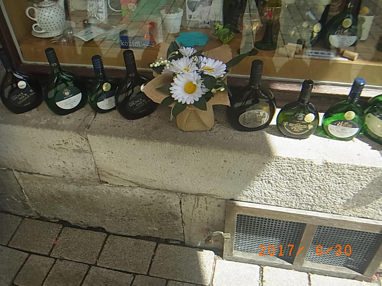 右窓の窓。旧市長のヌッシュ氏が3.25Lのフランケンワインを一気に飲み干す仕掛けです。そうしたら左の窓。将軍が驚く様子の仕掛け。これは1631年、将軍から町の破壊命令を救ったとのこと
