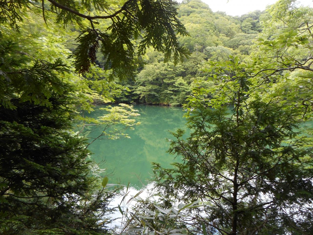 青池です。確かに青いです。しかし、う~ん、もっと深い青を期待していたんだけど……。やはり曇り空というのが