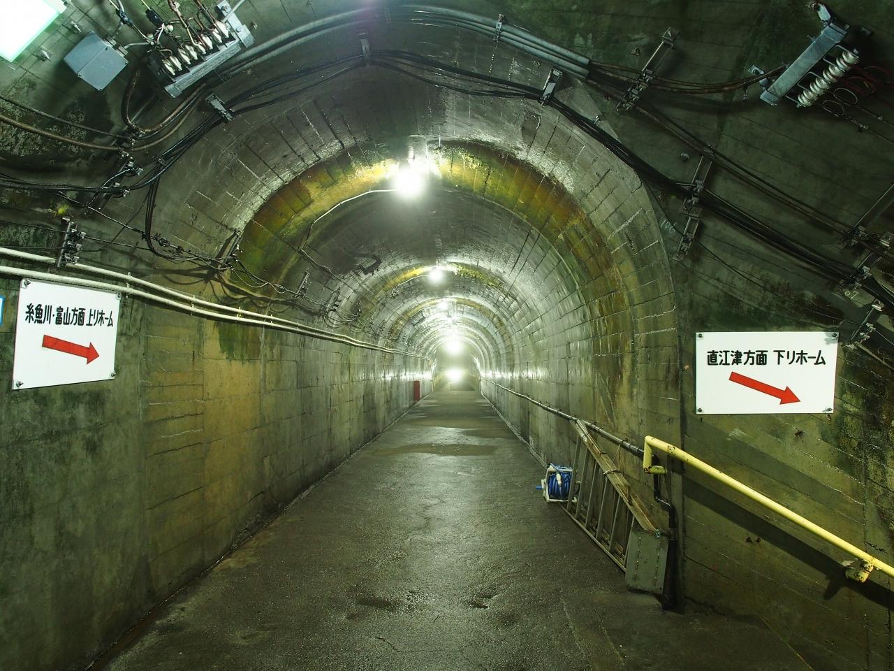 しばらく歩くと糸魚川方面と直江津方面のホームへ降りる分岐点が現れました(*^o^*)