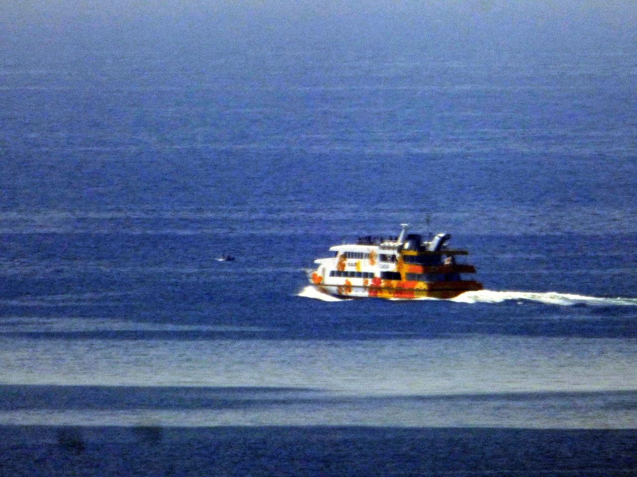 この日は朝から綺麗に晴れて、高速船や、釣舟がよく見えて、眺めているだけに飽きません。