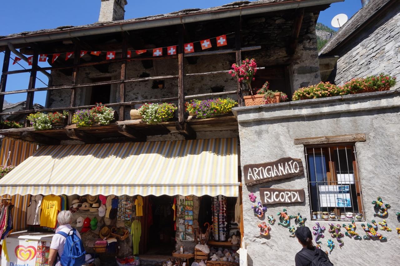 観光客相手のお土産屋さん。スイスの美しい村として知られていますが、昼休みの時間帯なのか、我がツアーのお客様以外はいないようで閑散としていました。