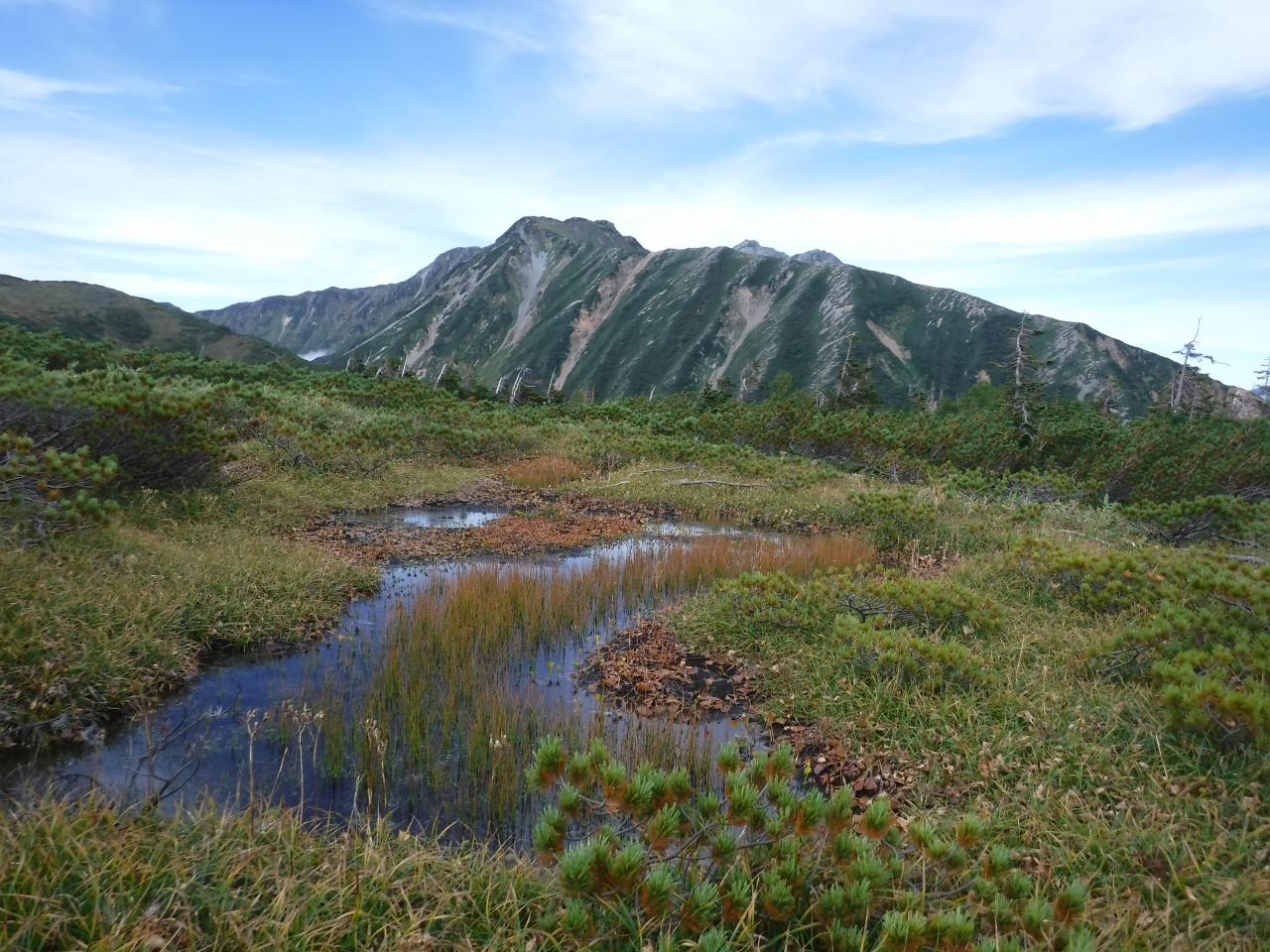 あの険しい山の裏側には、平らな別世界の五色ヶ原が広がっている。 -