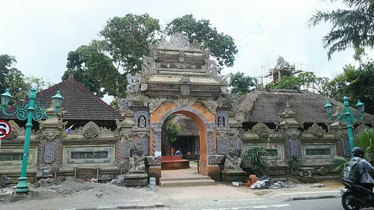 あんまりお腹も空いてないけどココまで来たから Ibu Oka3 にバビグリンを食べに行こうということになり、王宮ヨコの道(JI.Suweta)を北上すると目を引く寺院が。