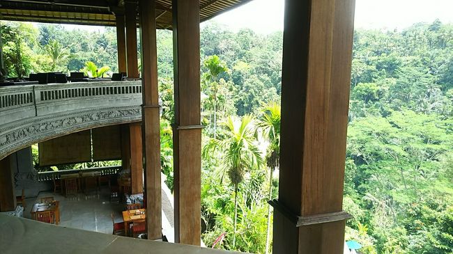 高級ホテルにしてはお安いし、この景色を眺められるんならわざわざ来る価値アリです。プリウランダリでは全くいなかった日本人客もチラホラ。宿泊してそうな方の他、オプショナルツアーでウブドに観光に来てここでランチ、のようなガイドさんと一緒の方もいましたよ~