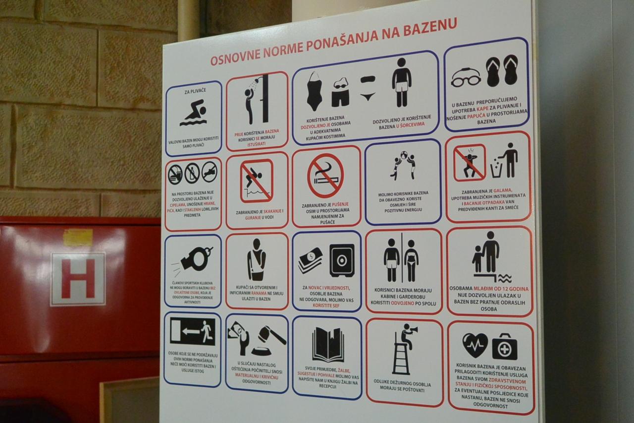 『Kupači sa otvorenim i inficiranim ranama ne smiju ulaziti u bazen.(開いた傷や感染した傷口を持つ人はプールに入るべきではありません)』でした。 -
