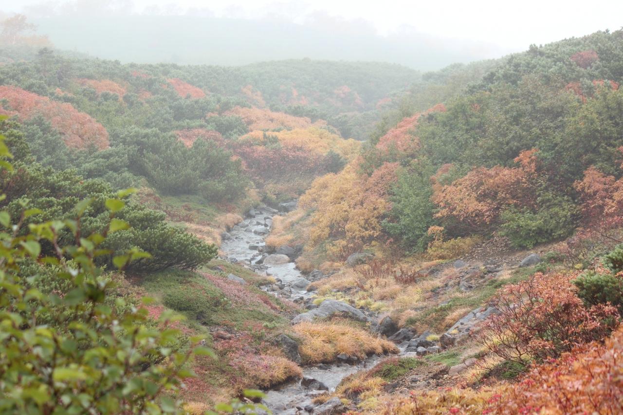 森林限界よりも下まで降りてきたあたりで一気に紅葉ムードになってきました。