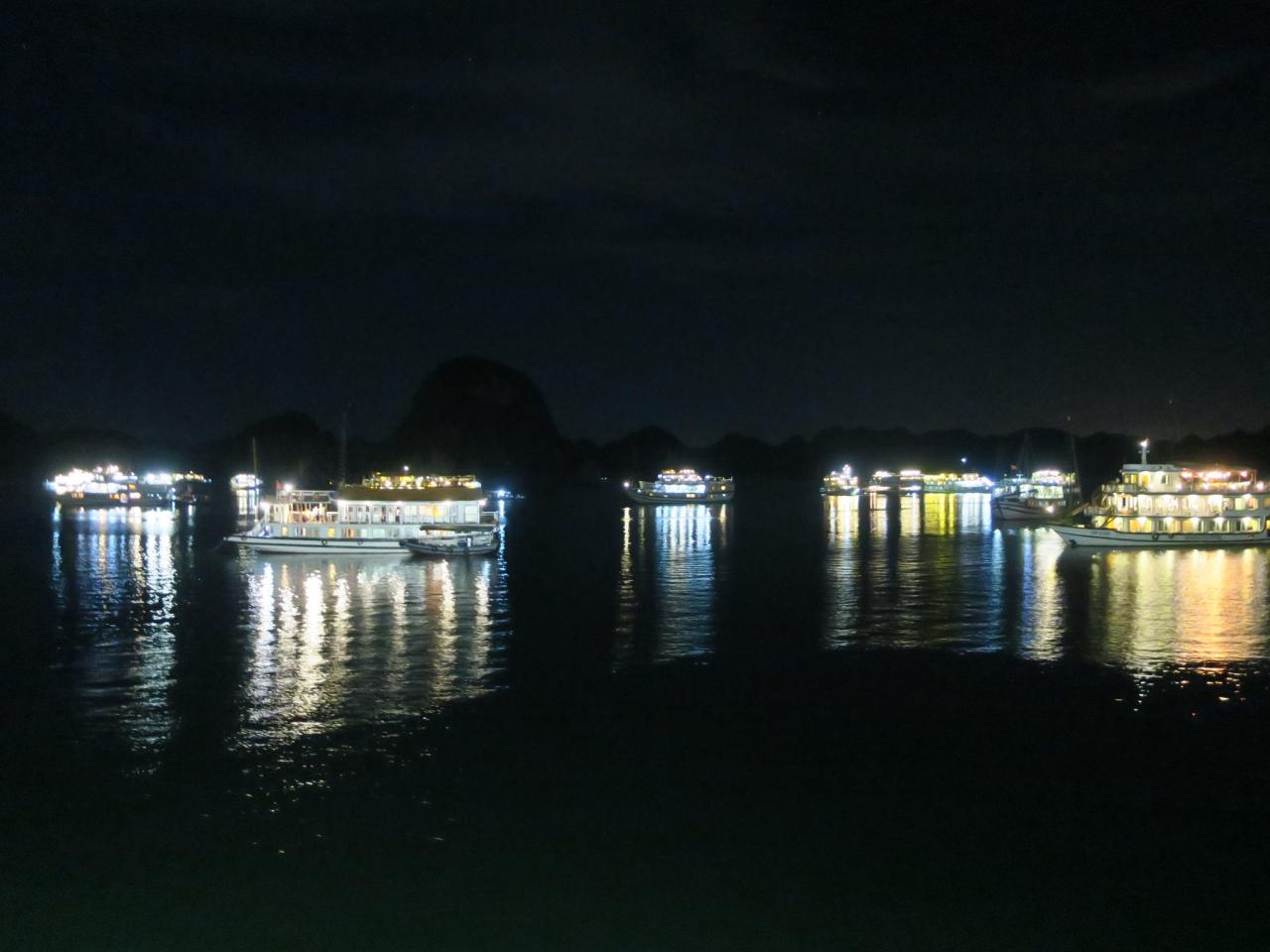 思いがけずたくさんのアクティビティがあり楽しめました。私が想像していた静かで幻想的なイメージとは違いなんだかとってもリゾート気分。湾内には日帰りの小さな船から私たちが乗ったような大きな船まで数えきれないほどクのルーズ船が出ています。でも周りを見回すと海面から突き出した大小さまざまな奇岩に囲まれ、その中を縫うように進むクルーズは岩山のすぐ近くを通ったかと思うと遠くの奇岩が望めたり、見ていて飽きることがありません。また時刻と共に刻々と変わる景色もとても幻想的で素晴らしく、海の桂林といわれているらしいハロン湾ですが、私は桂林よりハロン湾の方が好きです。