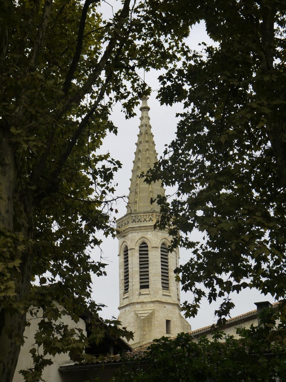 村の外側から木立を通してサンサヴァン教会の尖塔を撮りました。