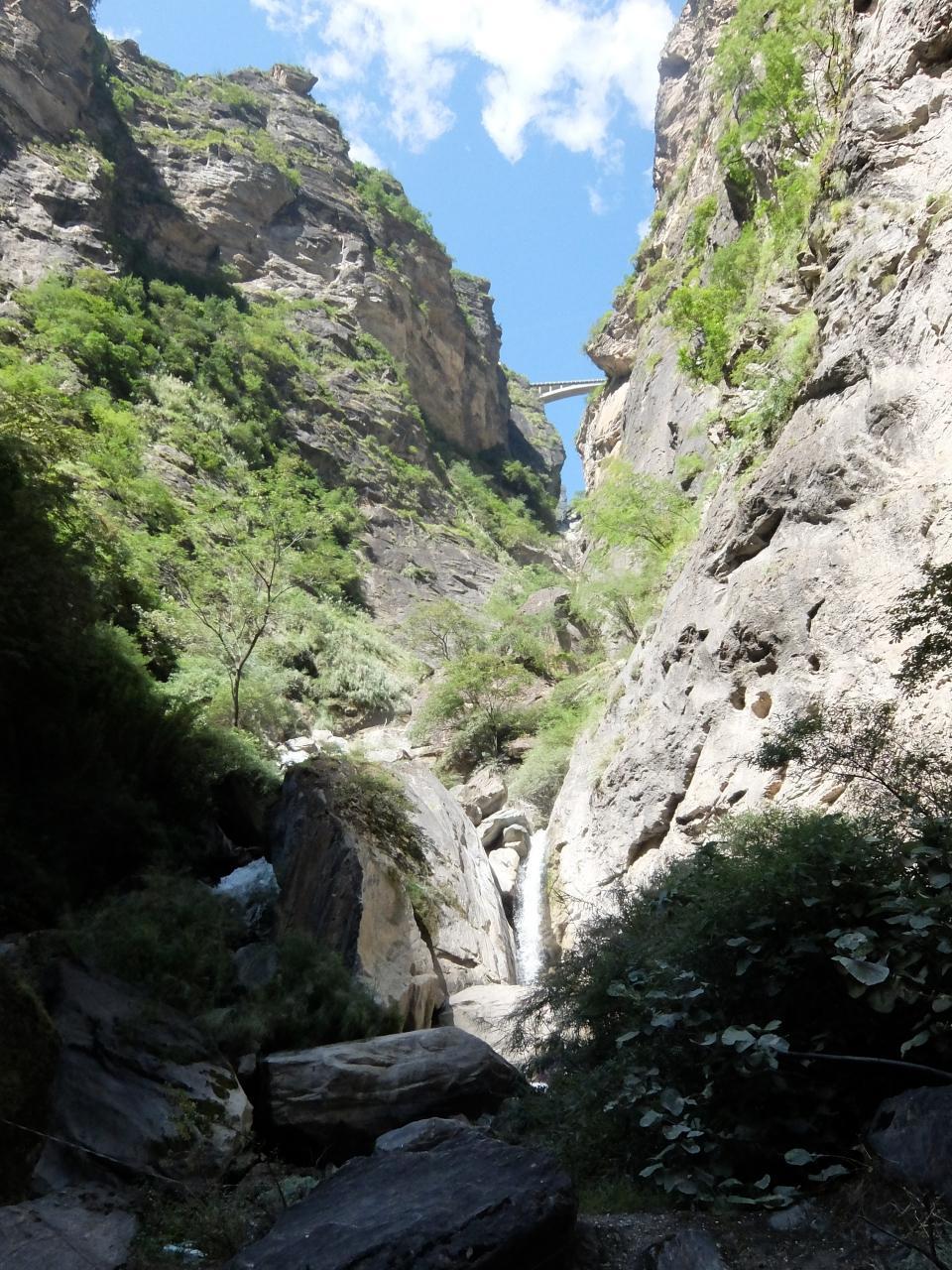 張老師ルートのほうから虎跳石。この橋は有料です。たしか10元。なぜ有料なのかは調べて下さい。中虎跳峡は各ルートで関所みたいなところがあり、料金を徴収されます。自分の場合、核桃園からのルートで下り、張老師GHのルートで登り、別々に徴収されました(15元と10元)。