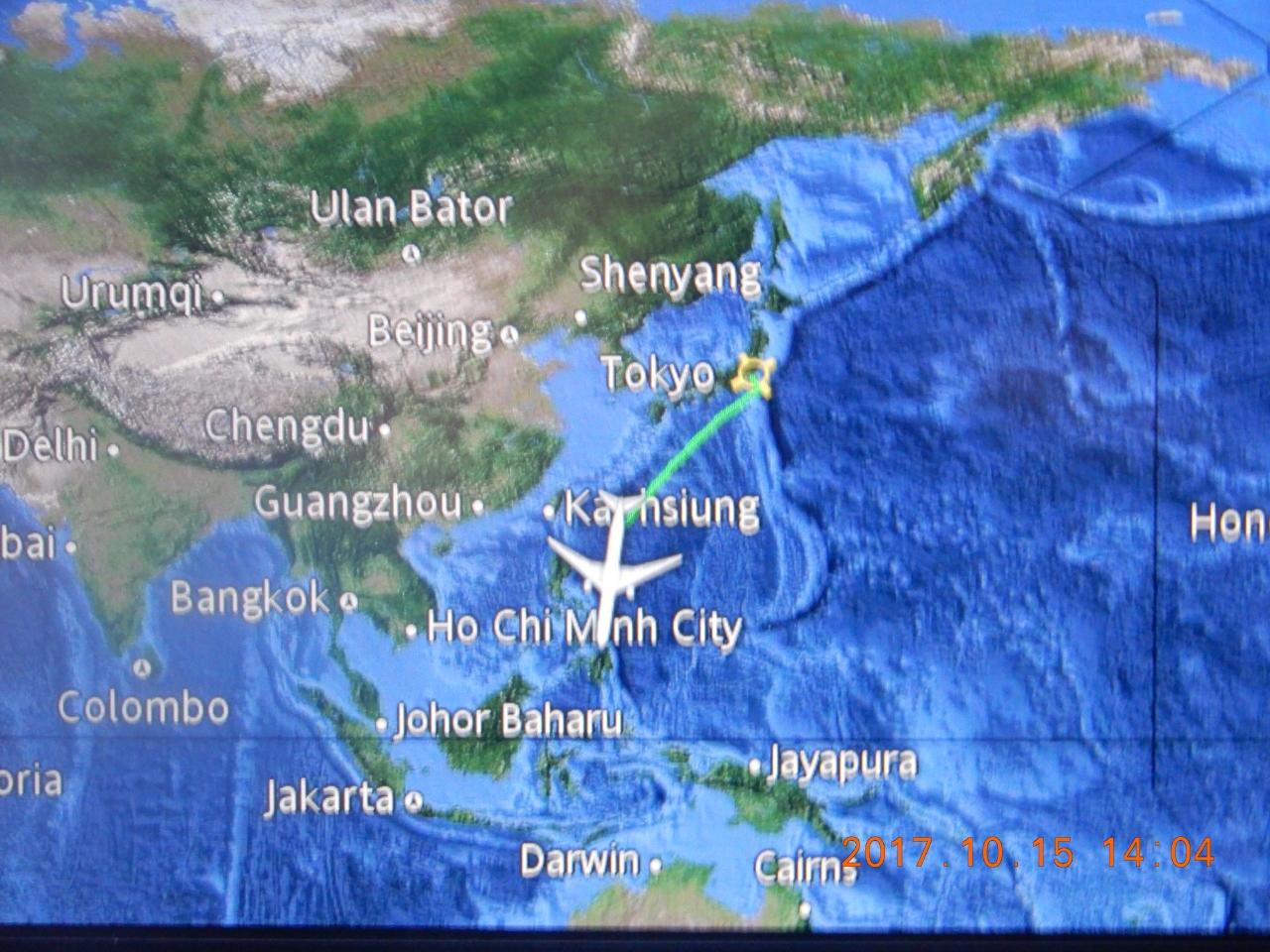 成田空港出発時は台風の影響で若干雨模様でしたが、上空に上がってからはこんな感じです。