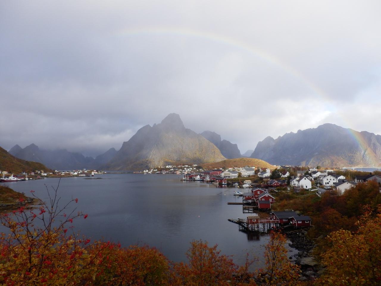 10/15 3日目もあいにくの天気でしたが、ロフォーテン最終日のためバスでÅとReineへ行ってきました。宿泊先からの景色です。
