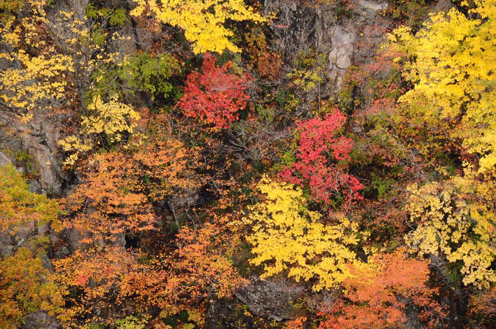 深い峡谷の断崖に、色とりどりに染まった木々が絶妙な風景を創り出していました。