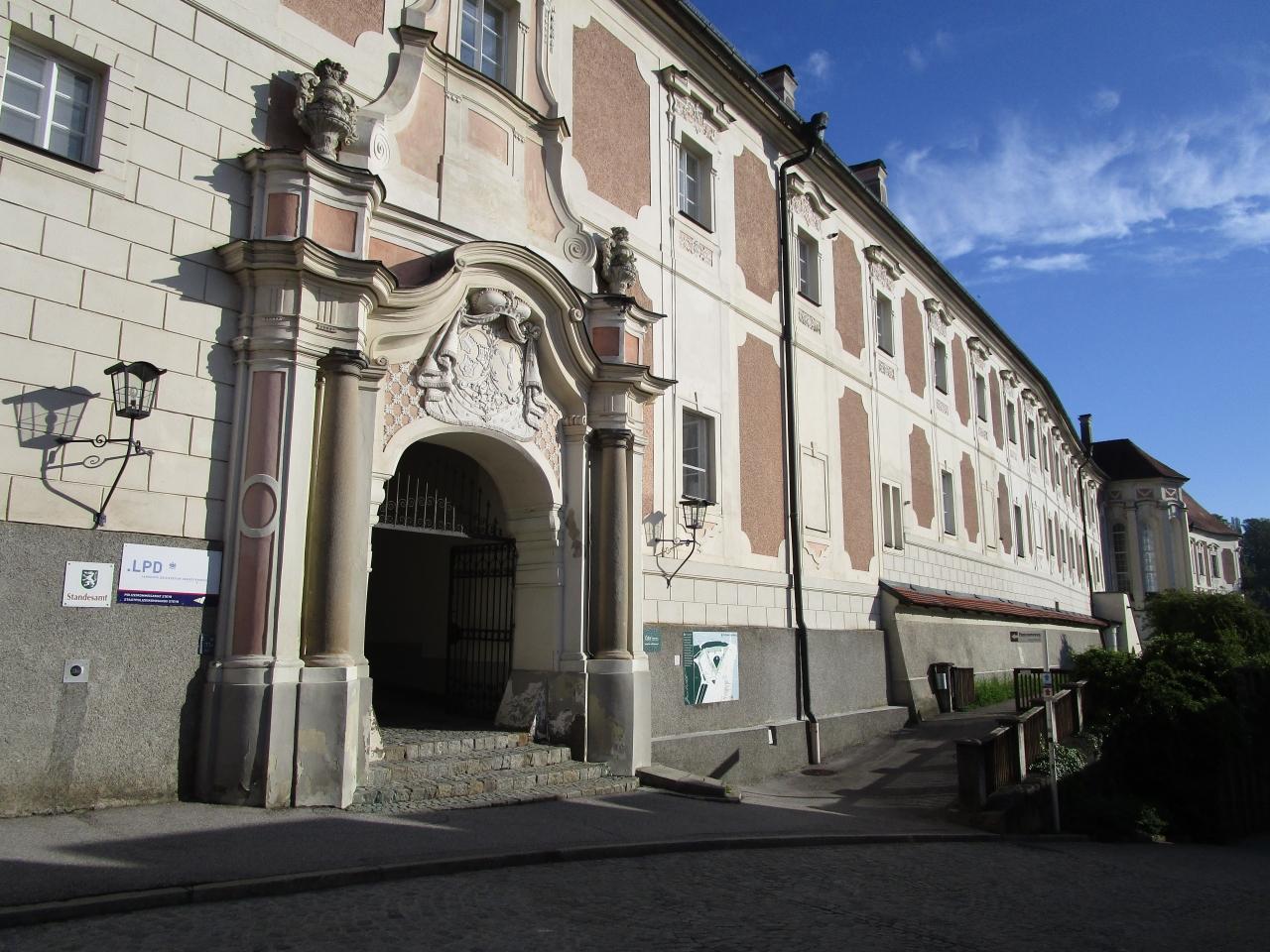 ランバーグ城(Schloss Lamberg)の入り口とブルーマウナー通り(Blumauergasse)
