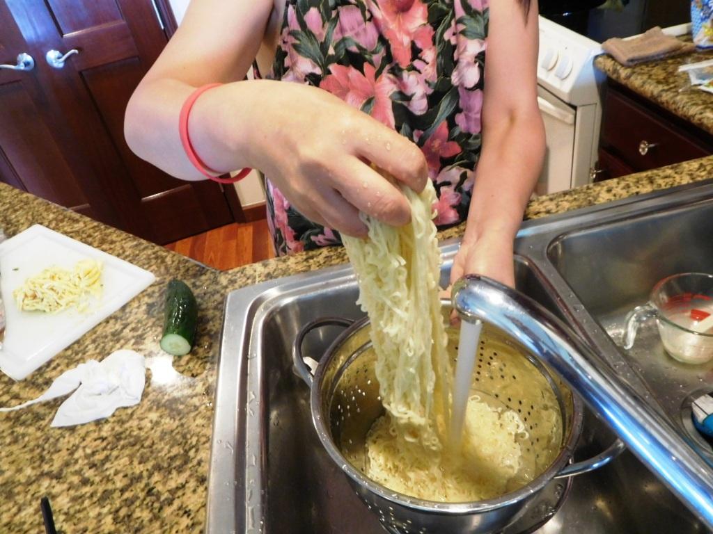 次に、麺を茹でます。基本はマルちゃんの冷やしラーメンです。