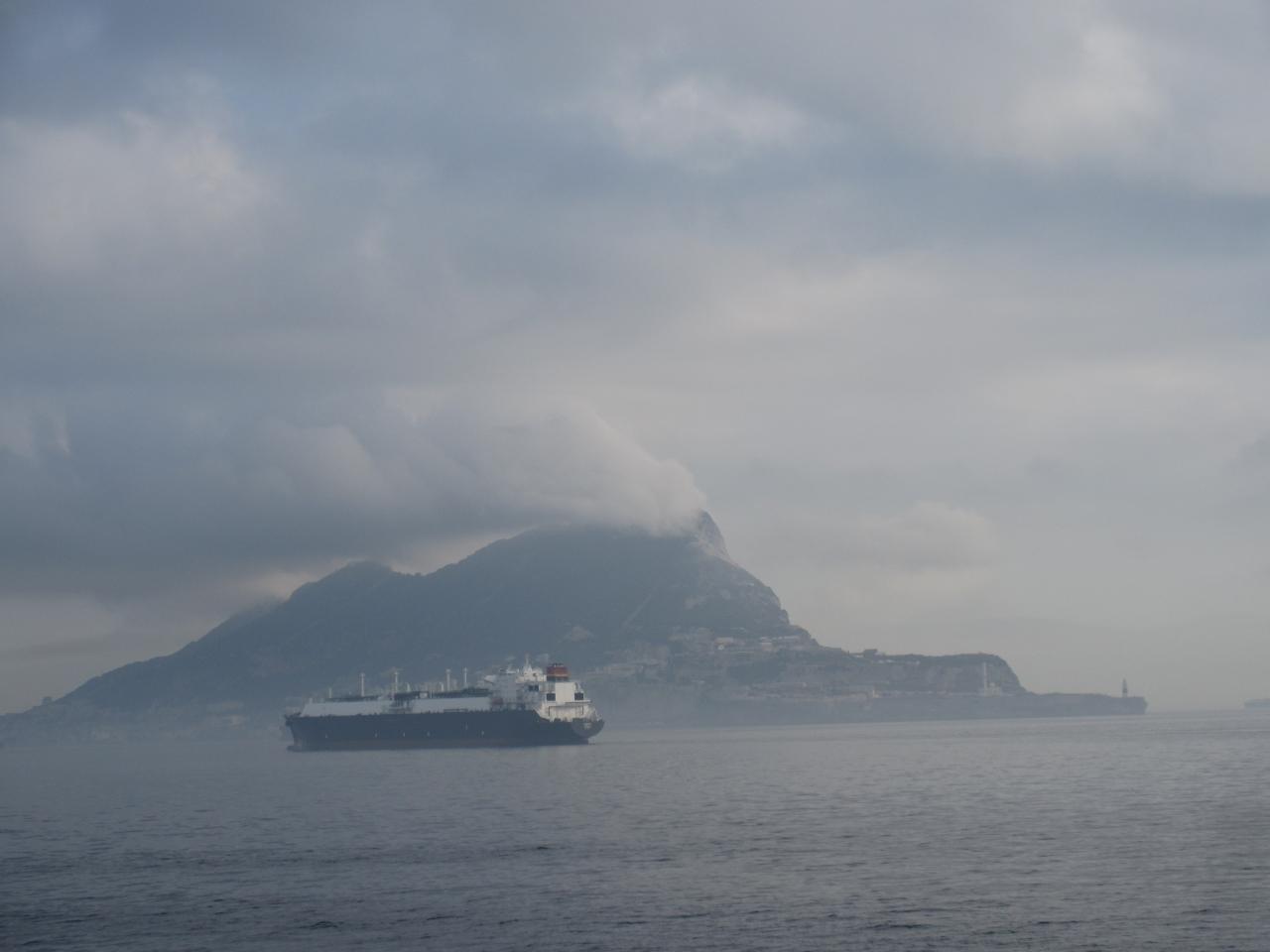 ジブラルタル海峡を南へ進むにつれてザ・ロックが小さくなってきました。