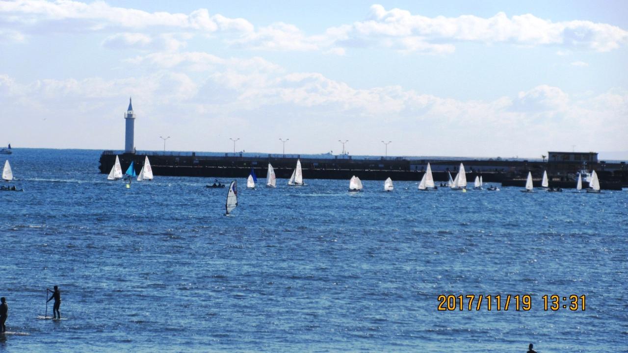 19日(日)は「一人乗りヨット」が100艇くらい出ていました。 -