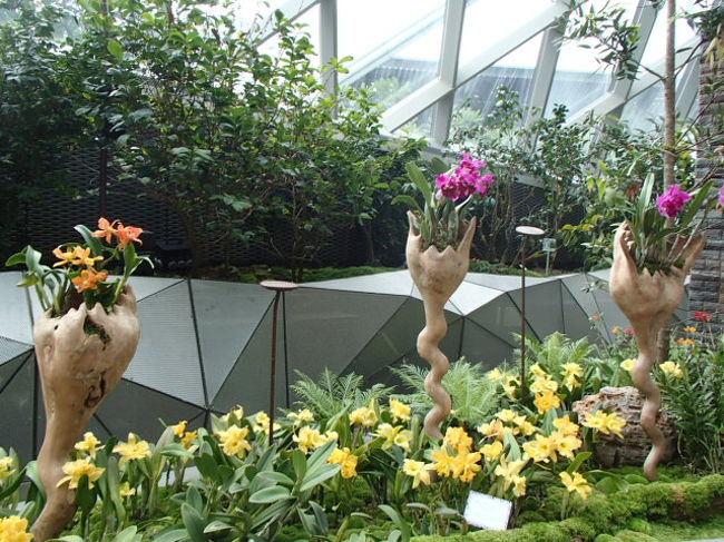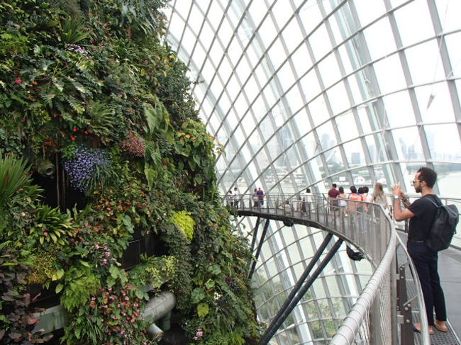 ガーデンズバイザベイの入場料は無料ですが、ガーデン内のクラウドフォレストとフラワードームは有料です。28ドルだっけ?シンガポール航空の搭乗券を見せると、10%オフになりました。