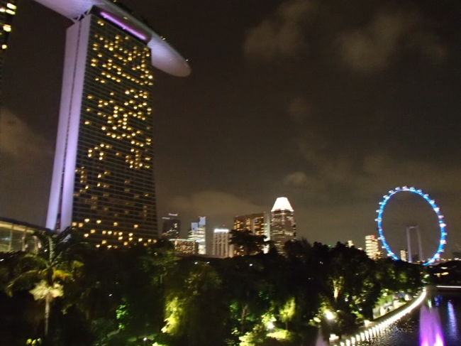 マリーナベイサンズ、きれいです。21時すぎても全然危険な雰囲気のない街ですね。治安のよさを感じます。