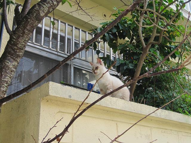 遠くから見ているにゃんこ。