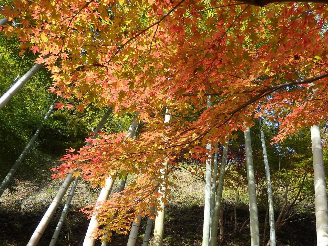 竹と淡い紅葉。
