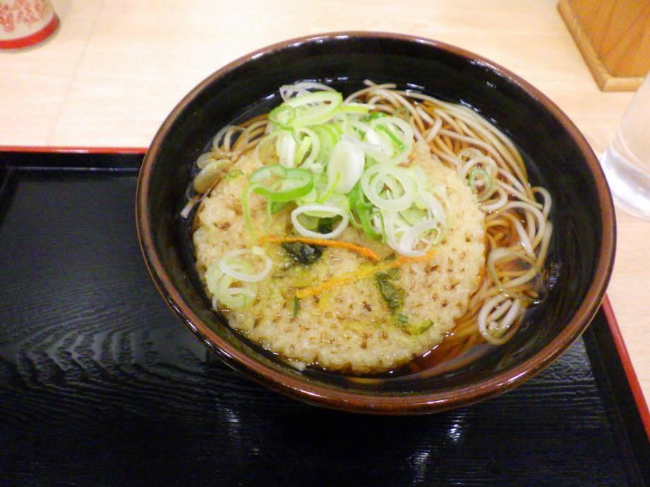 レンタカー屋がオープンするまでの朝食で伺いました。天ぷらそば460円をいただきました。天ぷらそばのそばはごくごくふつうの駅そばのそばで、天ぷらは汁のなかでボロボロにほどけててんかすだけのたぬきそばのようになってしまったので、これで460円はちょっと高いなと思いました。