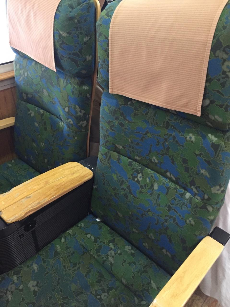 一人がけの席は風景が見やすくて、街からだんだん海になっていくのがよく見える