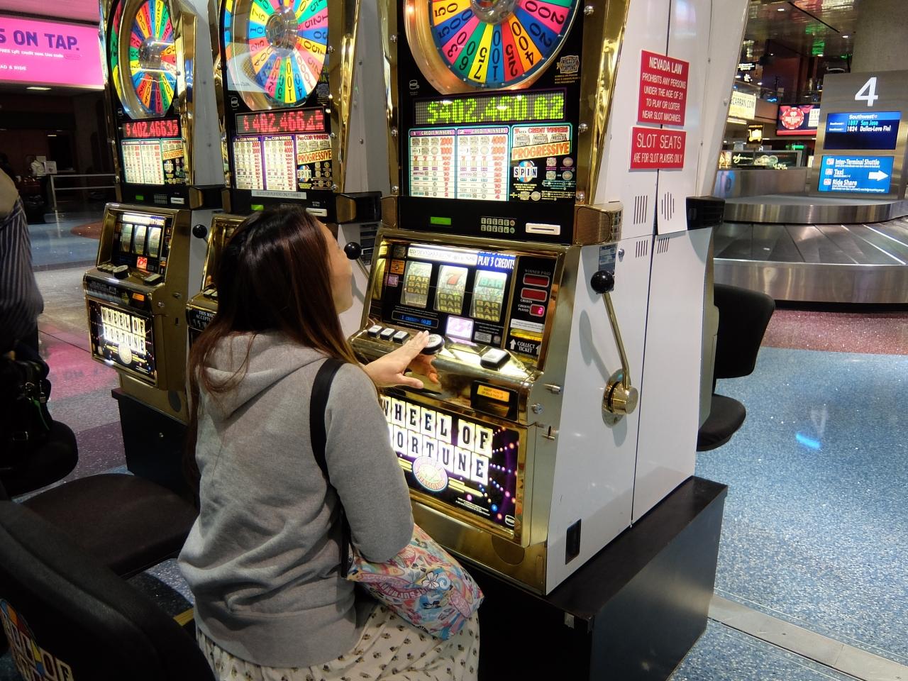 LASに到着し、ゲートを過ぎると、そこからもうカジノの世界が始まっています。