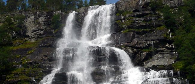 朝ソールストランホテルを出発したバスは、40ものトンネルを潜り、石作りの教会の建つヴァングス湖、”若返りの滝”こと”ツヴィンネの滝”花嫁の滝”に出迎えられて、遊覧船の出航地グドヴァンゲンへ。 -