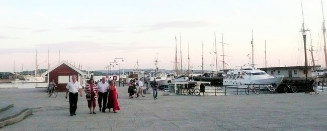 港に沿って左側に目をやると、夕日で朱色に染まったアーケフシュース城をバックにした、