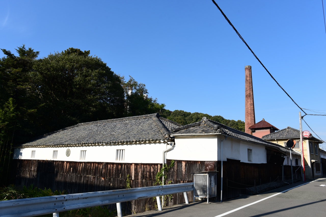 醤油醸造場のレンガ煙突が顔をのぞかせています。