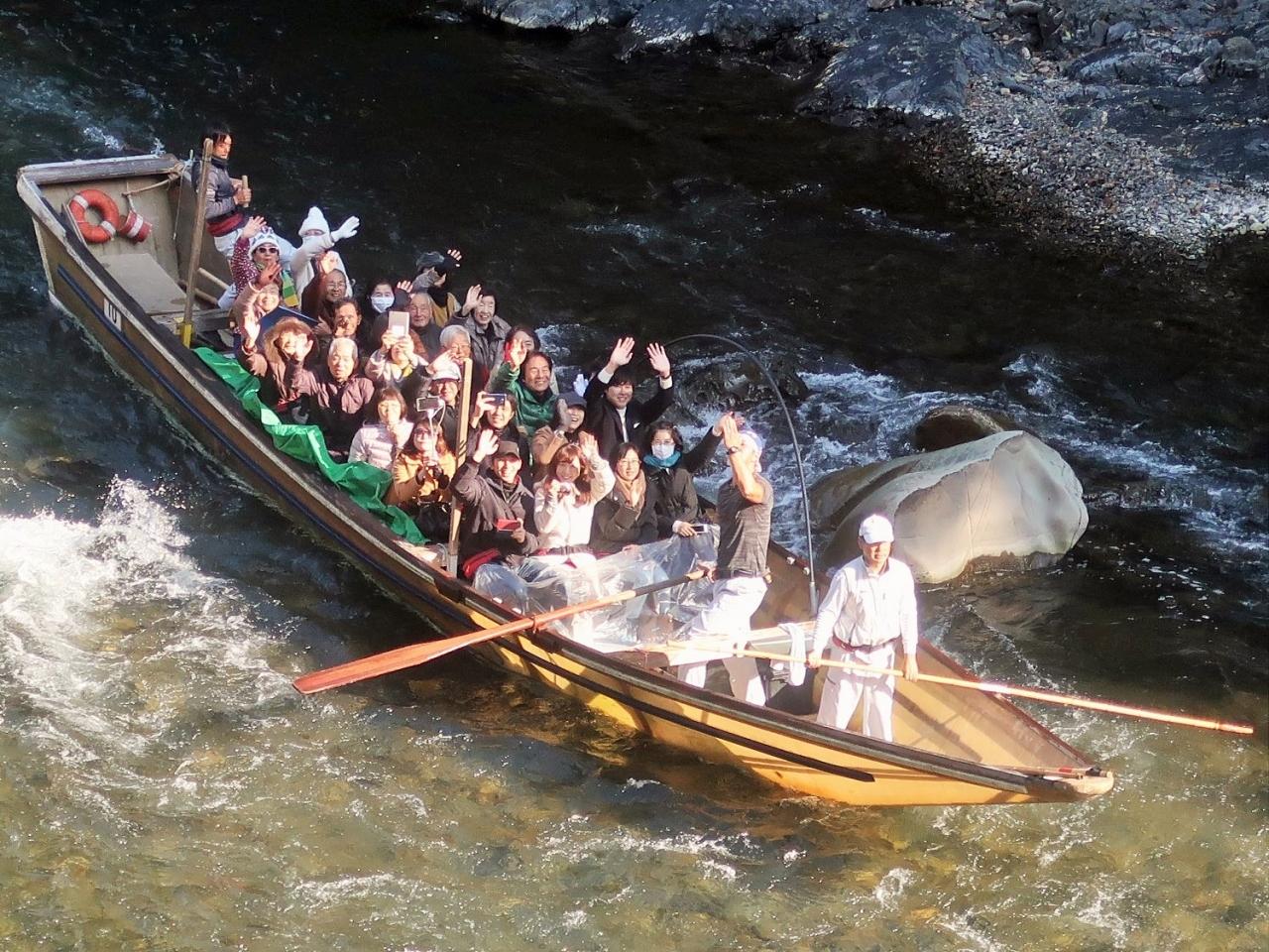 平均速度は時速約25km。ちょっと速い自転車くらいの速さです。だからこそ楽しめる保津川沿いの自然や渓谷美。片道7.3kmおよそ25分の間、春の桜、夏の新緑、秋の紅葉、冬の枯野や時には雪景色と、四季それぞれに違った風景を楽しめます。特に景色が美しい場所では、速度をおとして走りますので、ゆっくりと景色をお楽しみいただけます。トロッコ列車に乗った人だけが楽しめる渓谷美。他では撮れない1枚が撮れるかもしれません。
