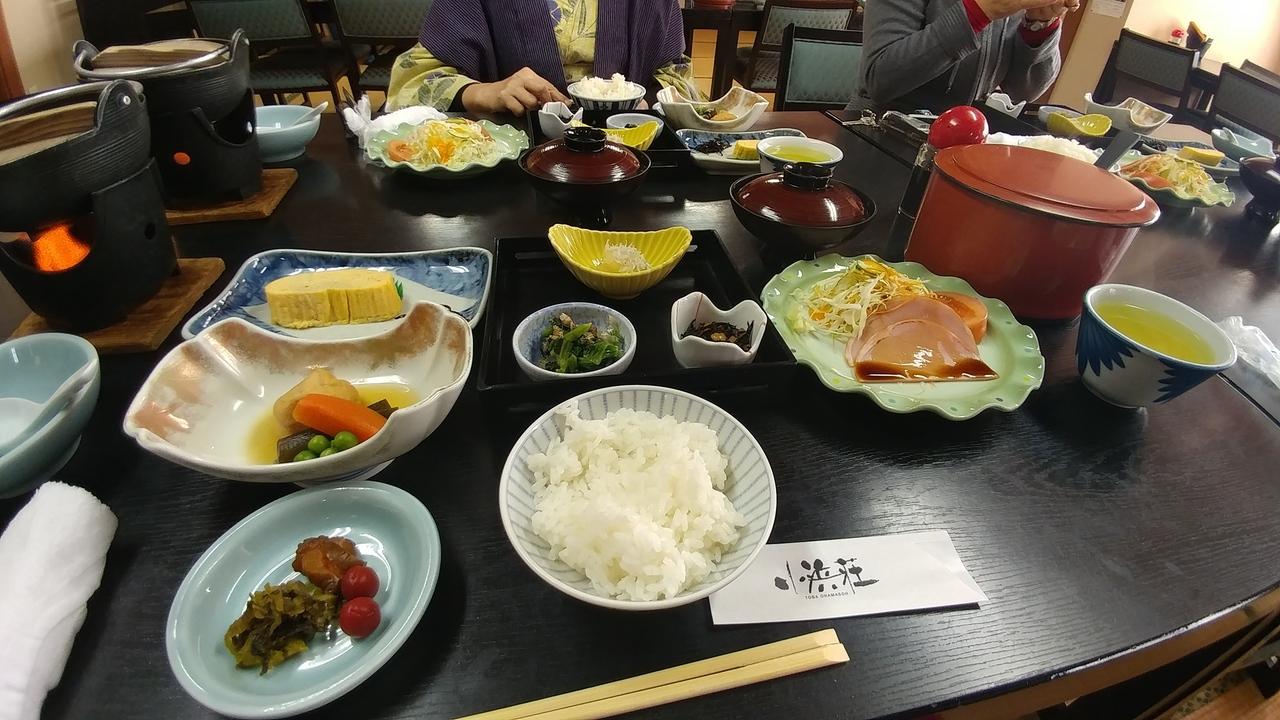 朝日拝んで朝湯に入らせてもろて朝ごはん。