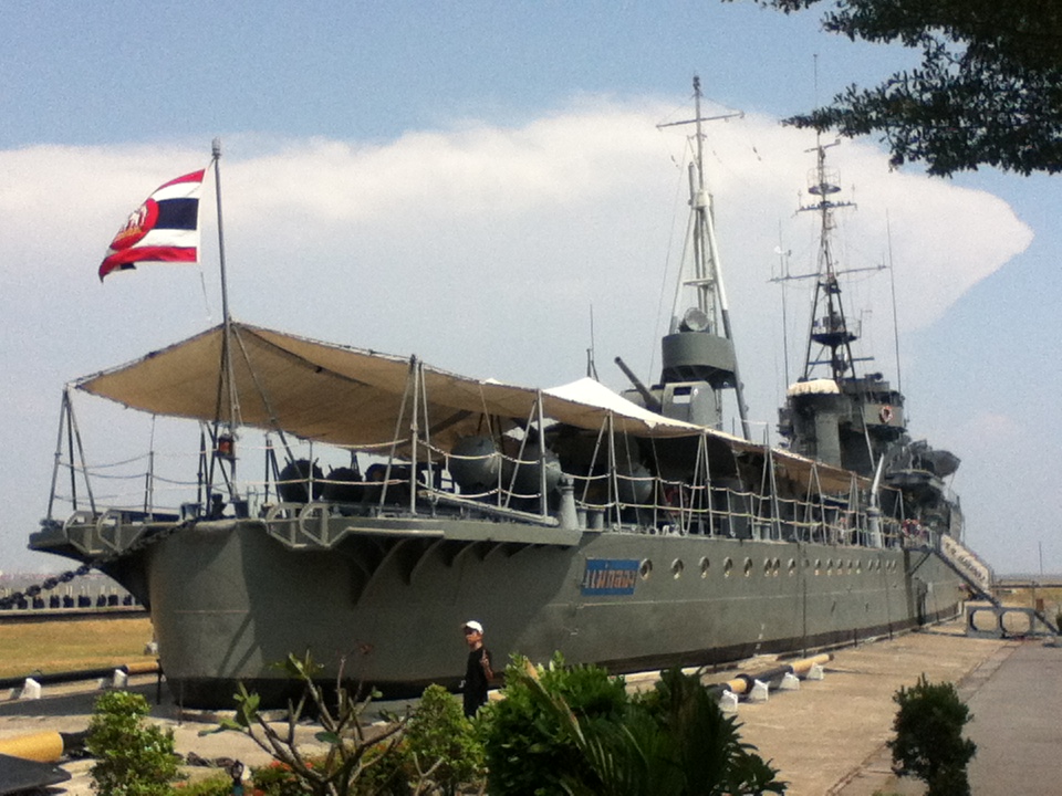 見学は、楽しかった 嬉しくて、嬉しくて、もっと見たかったのですが、さすがの暑さに降参 30分で見学切り上げました 艦長室にある故プミポン国王8歳時のお写真見忘れたー! 暑さで思考回路麻痺、残念!
