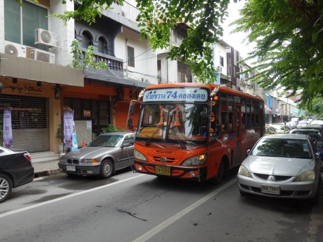 このバスは始めは西へ西へと進み、途中からバンコクを北上します 東西に伸びるスティサン通りとの交差点で下車し、次のバス乗り換え -