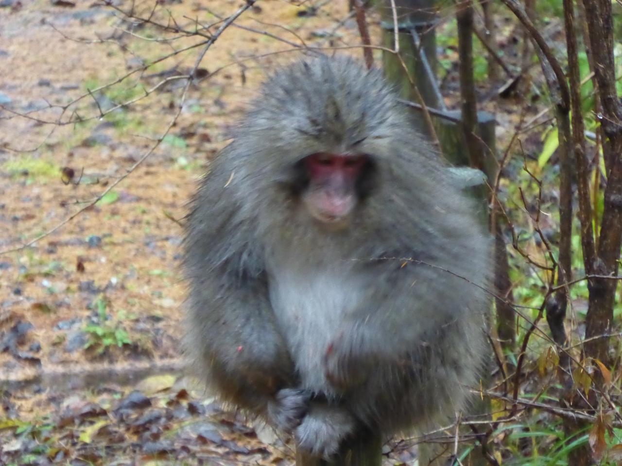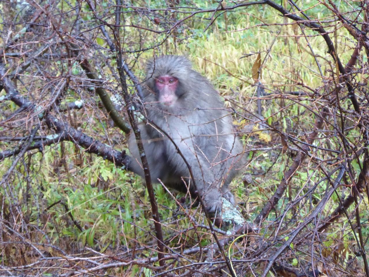 ニホンザルたちはすでに冬毛に変わって体がふさふさ。