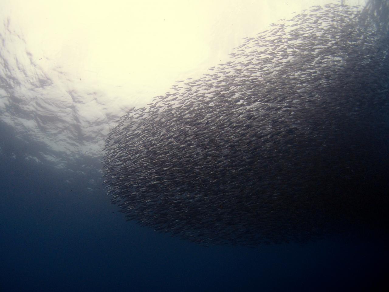 水深は浅い場所なのでたっぷりと群れと泳ぐ。