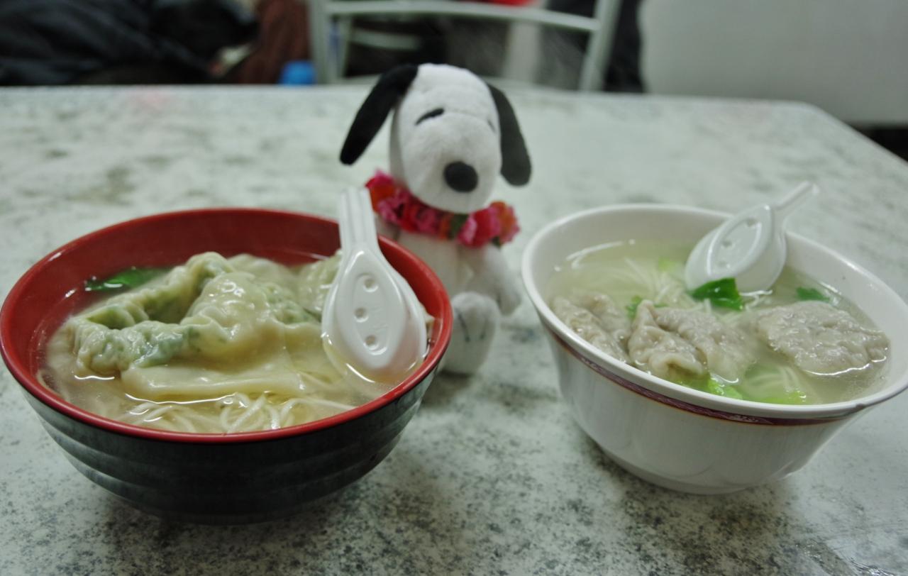 鮮肉饂飩湯麺45元と鮮蝦饂飩湯麺55元。
