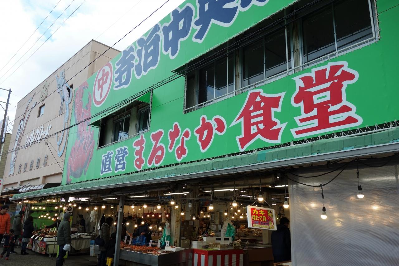 広い駐車場はガラガラで、とても静かでした。年末はツアー客がバスで押し寄せるようですが、全体でも海産物を扱う店は10軒も無いかも