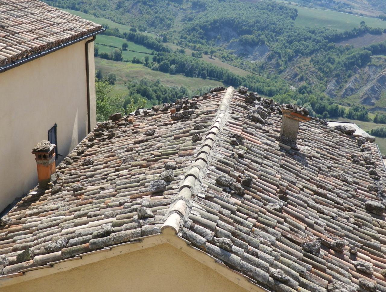 Pieve di Santa Maria Assunta教会の前から見るサン・レーオ城
