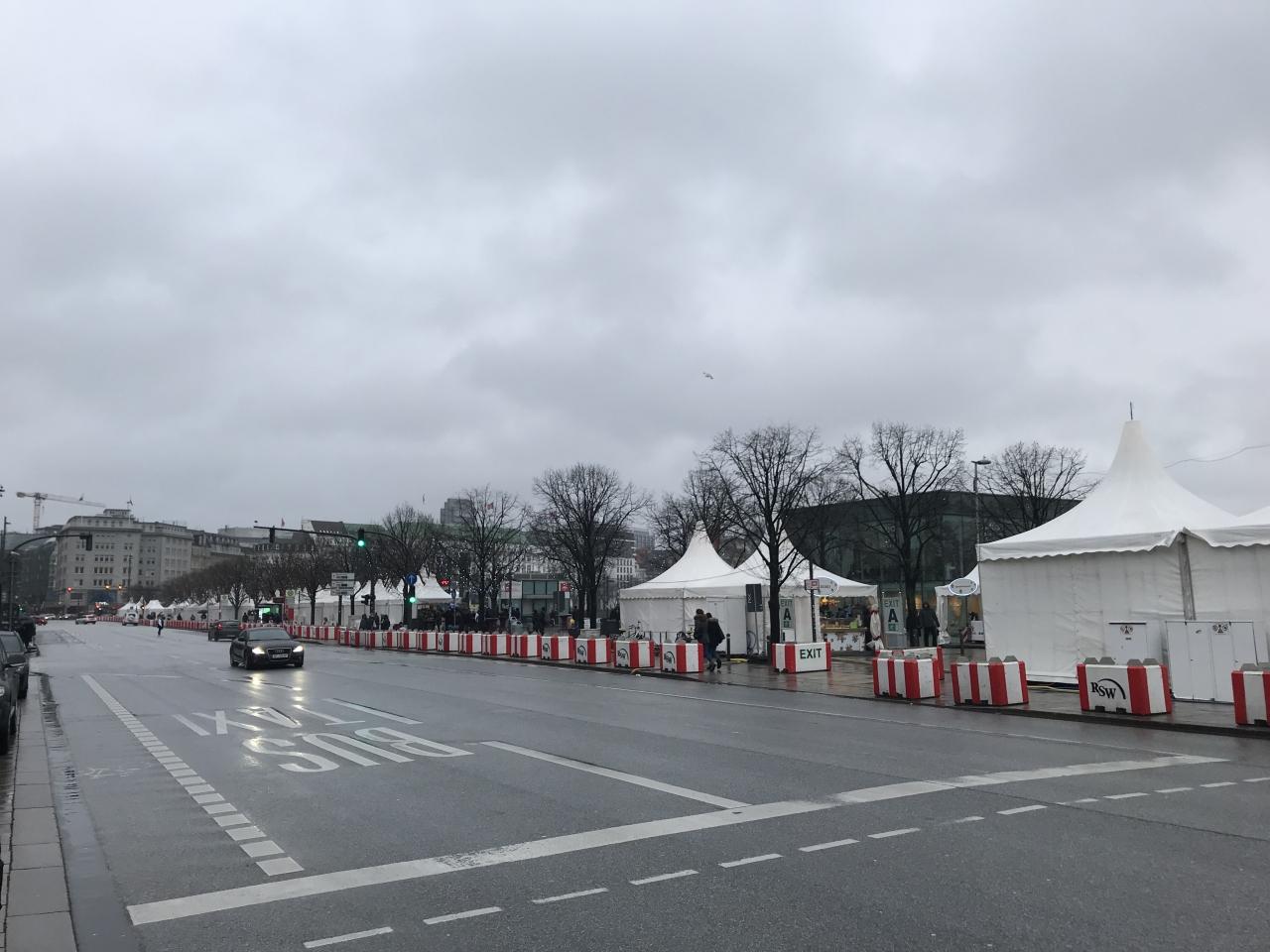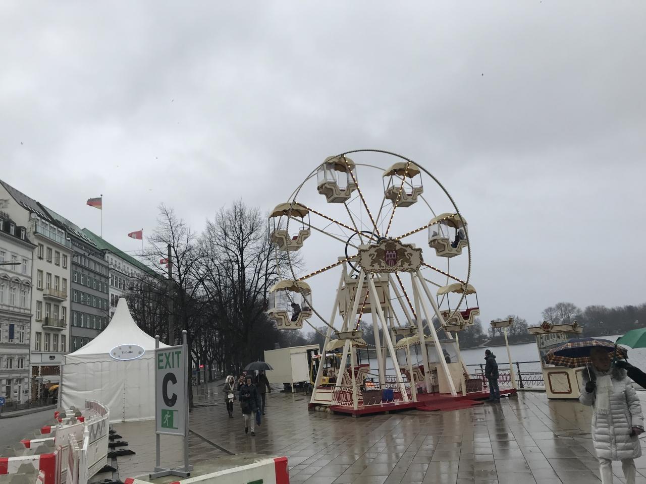 ハンブルクの街中には、まだクリスマスマーケットも少し残っていました。ニューイヤーイヴは明日ですが、小雨の降る中でも結構賑わっていました。
