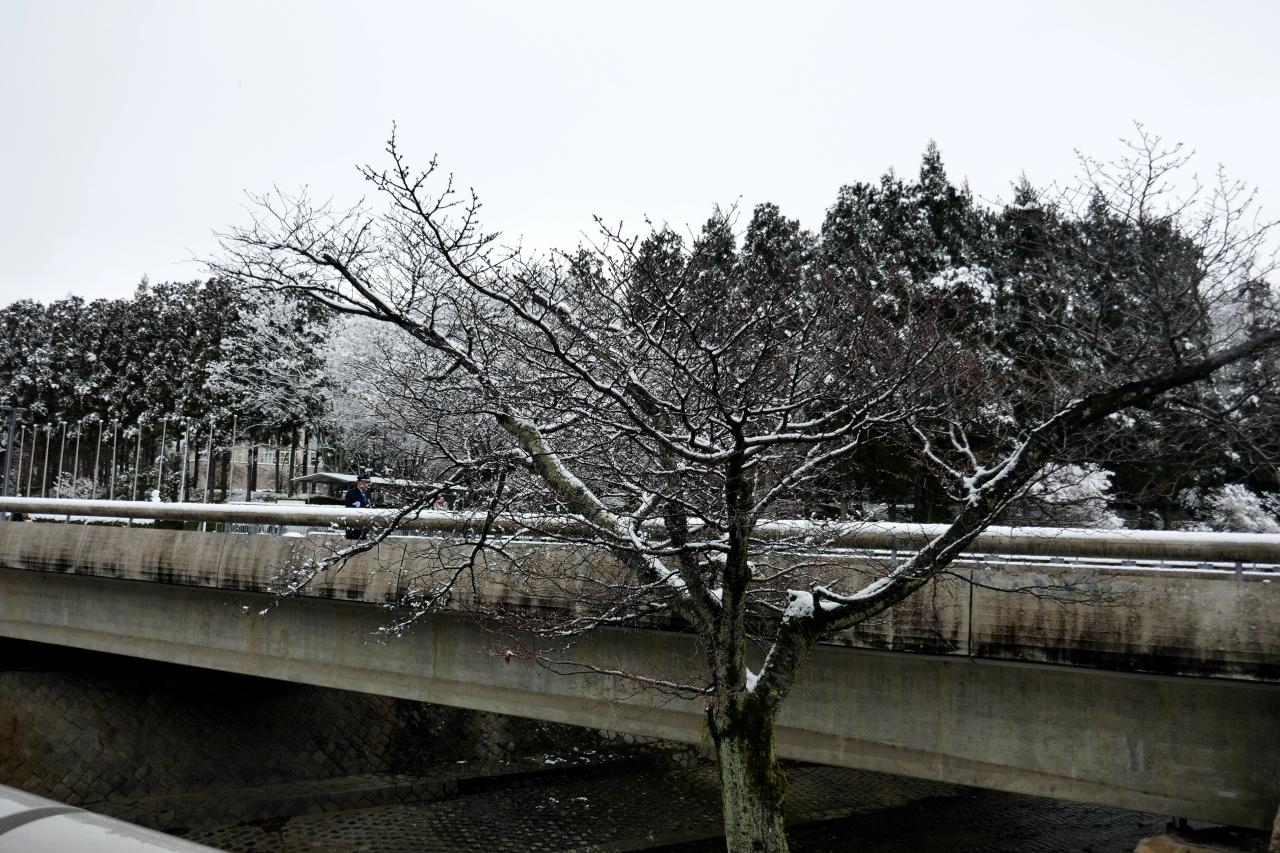 1017 国際会館の出口におりると一面の銀世界 びっくり こんなに洛中とは気候が違うんだ