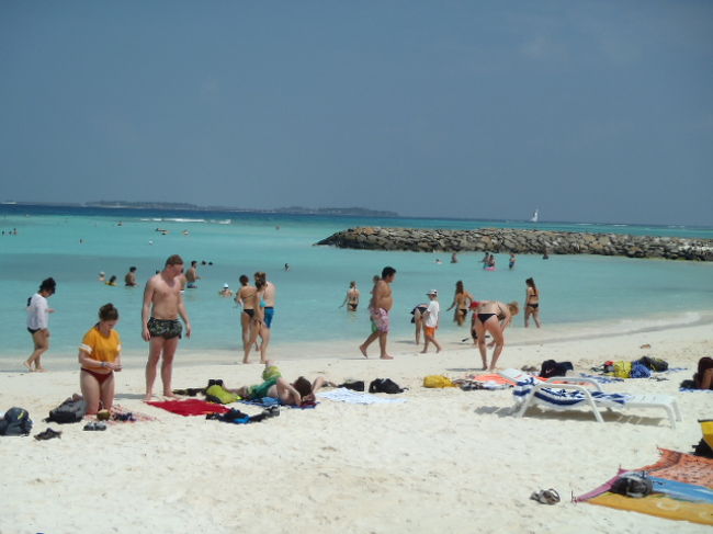 観光客がビキニ姿で泳げるMaafushi島唯一のビーチライフが堪能出来る