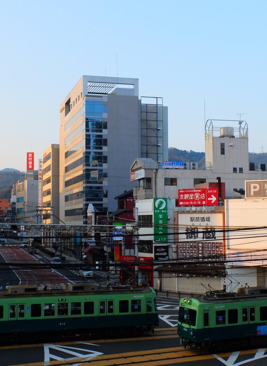 京都市内に向かう地下鉄も道路を走るのが不思議。