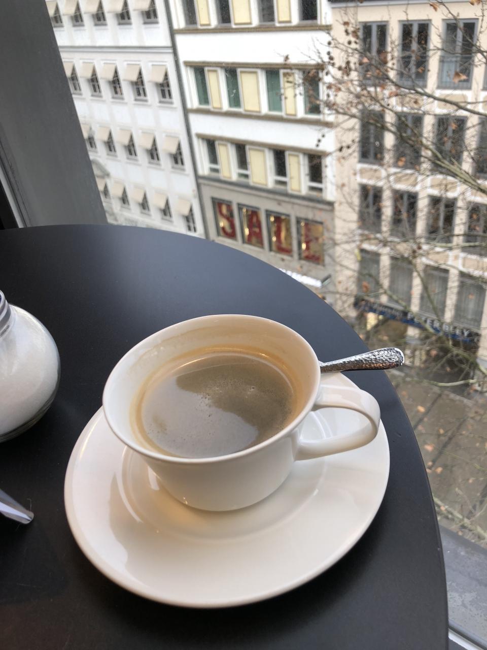マリエン広場近くのガレリア内のカフェで1服。眺めが素晴らしい!