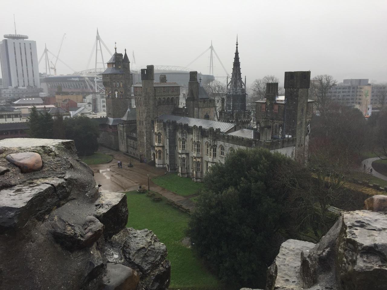 The Keep頂上から城外のミレニアム・スタジアムのズーム
